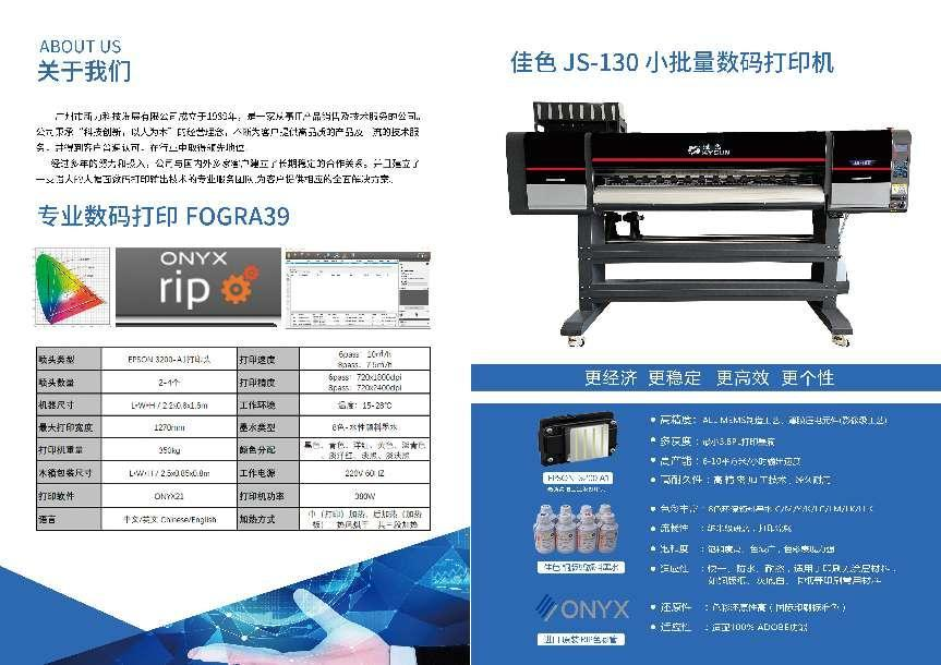 廣州市新力科技發(fā)展有限公司在展會(huì)上推出了自己研發(fā)生產(chǎn)的新產(chǎn)品:佳色JS-130 數(shù)碼打印機(jī),產(chǎn)品的打印速度快,輸出顏色精準(zhǔn),適合小批量打印生產(chǎn)的業(yè)務(wù)。其次,我們還展示了日本 EPSON 高速打印機(jī),日本 CANON 大幅面打印機(jī)。為我們廣大的印刷客戶提供售前--方案定制 ,售中--產(chǎn)品銷售安裝,售后--產(chǎn)品維護(hù)、維修、升級(jí)的百分百的優(yōu)質(zhì)服務(wù)。